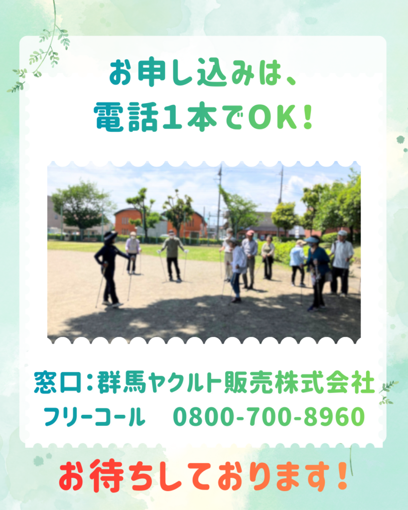 春の無料体験会のお知らせ❀ 2026.02.17 4月23日(木) 高崎市六郷長寿センターにて、無料体験会を開催❀ 時間は10:00~11:30で、雨天の場合は屋内で実施します! ずっと自分の足で歩き続ける健康づくり! 転倒予防の第1歩として、奮ってご参加ください☺ https://gunma-polewalking.or.jp/wp-content/uploads/2026/02/六郷長寿センター無料体験会.mp4